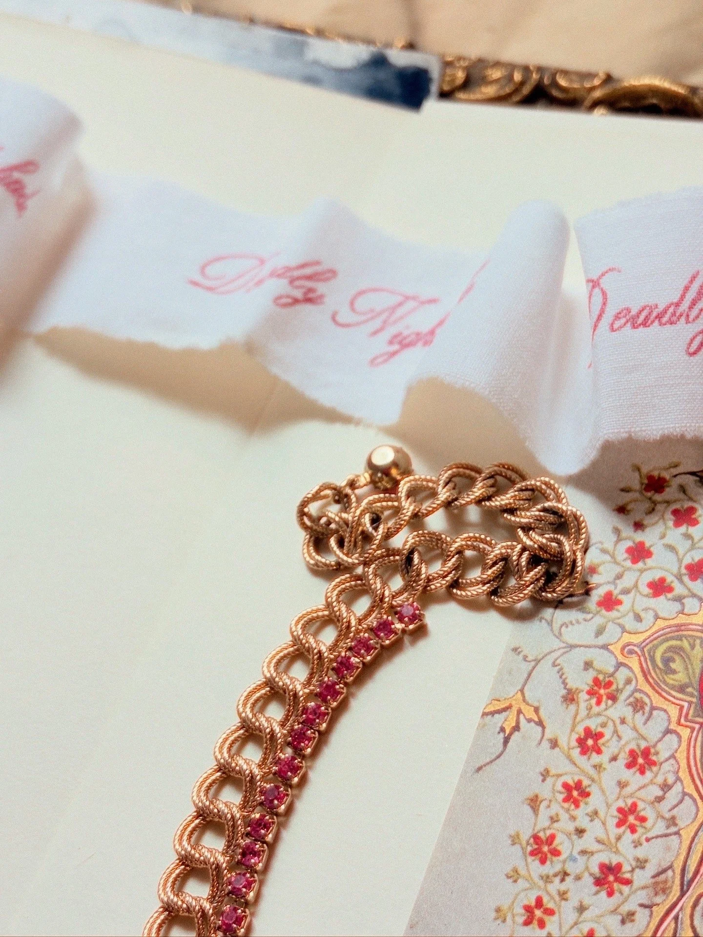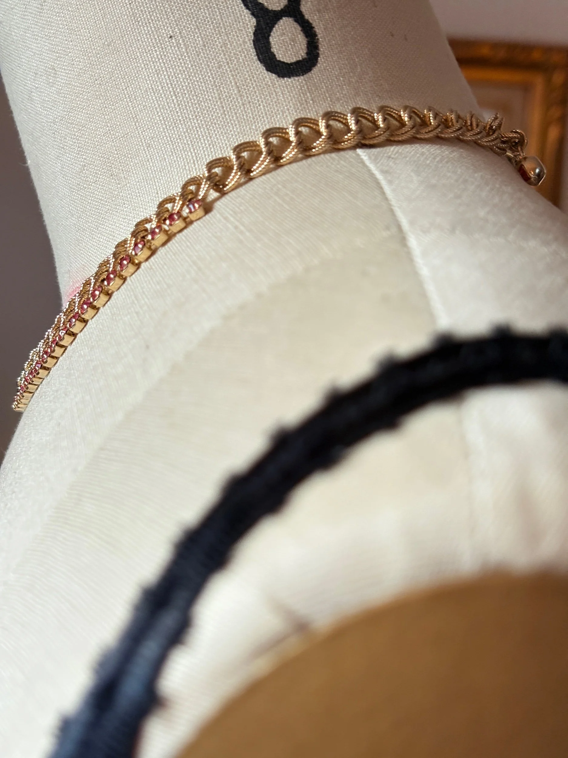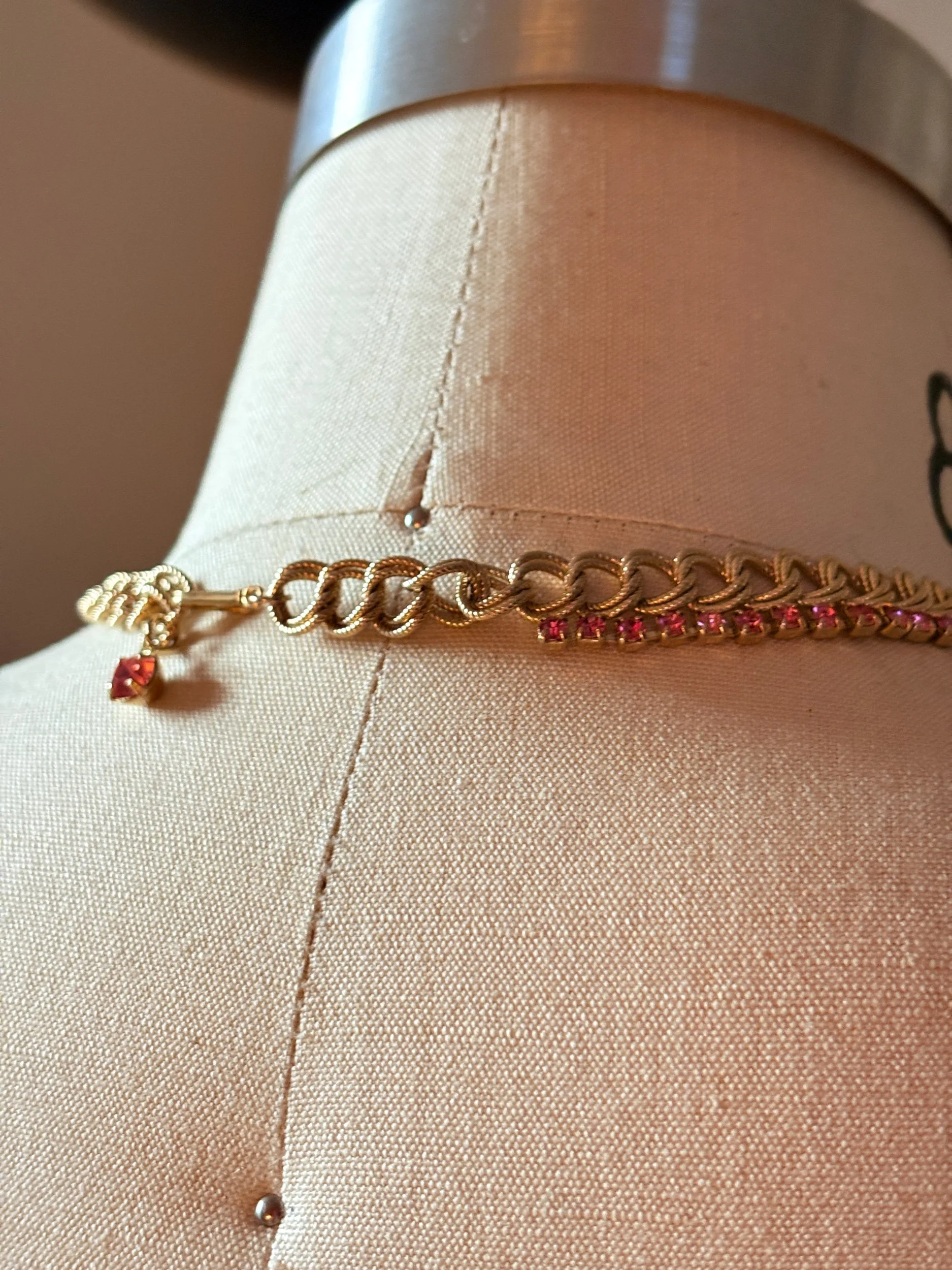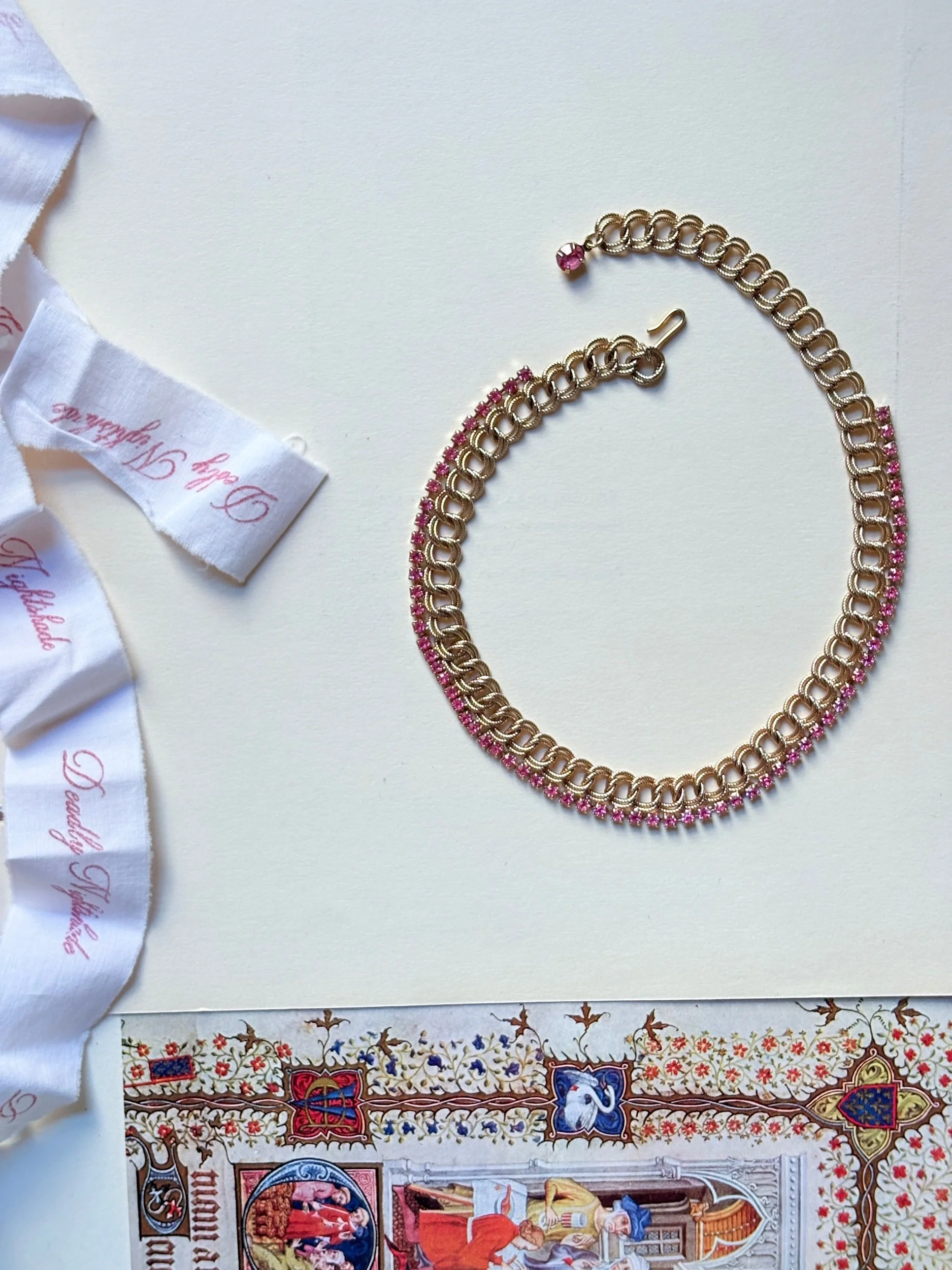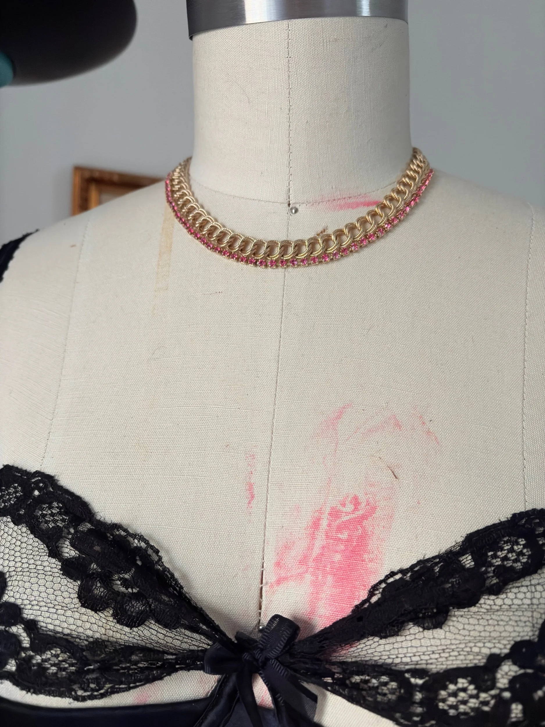 Vintage-Inspired Gold Chain Choker with Pink Rhinestones