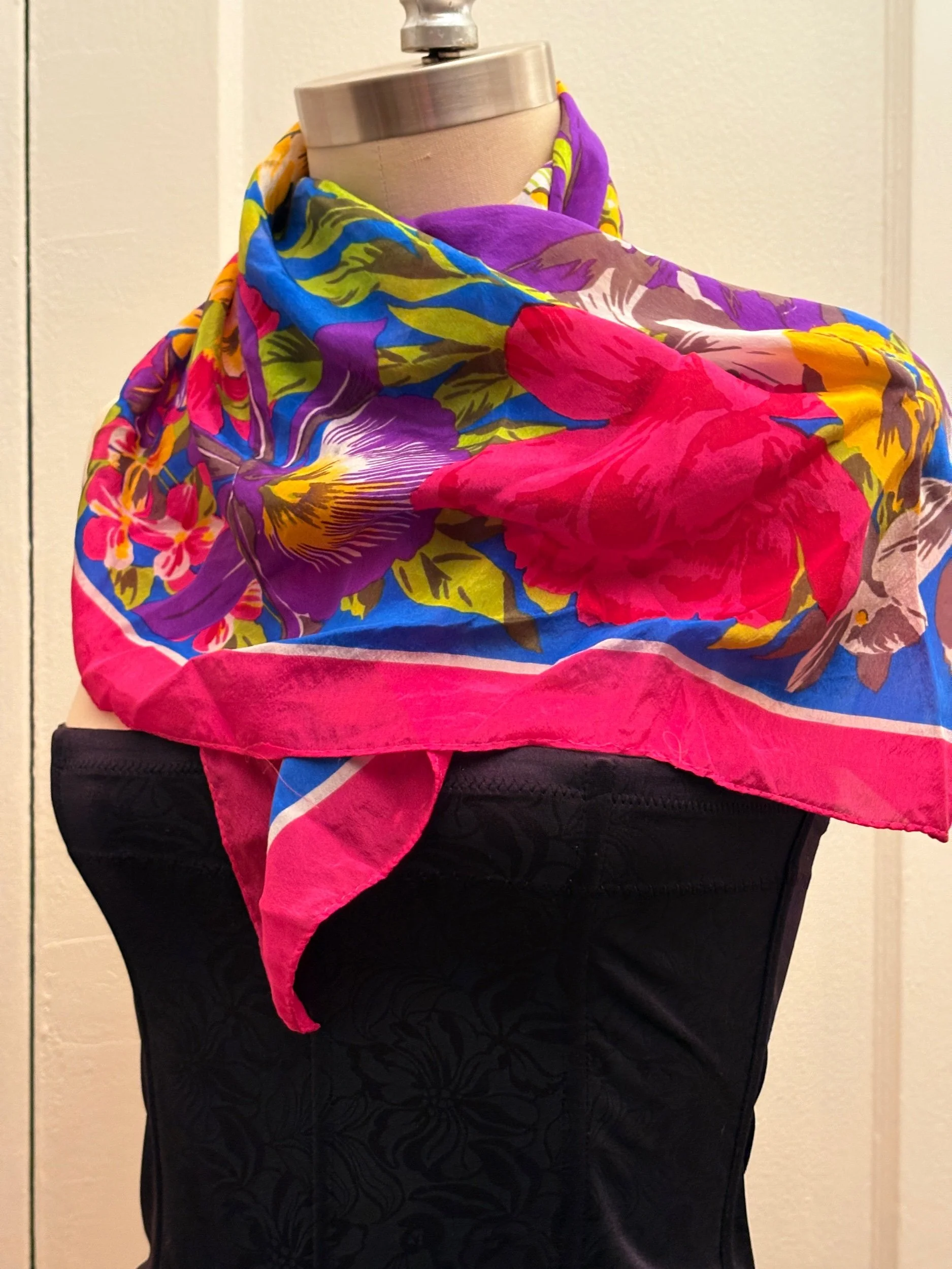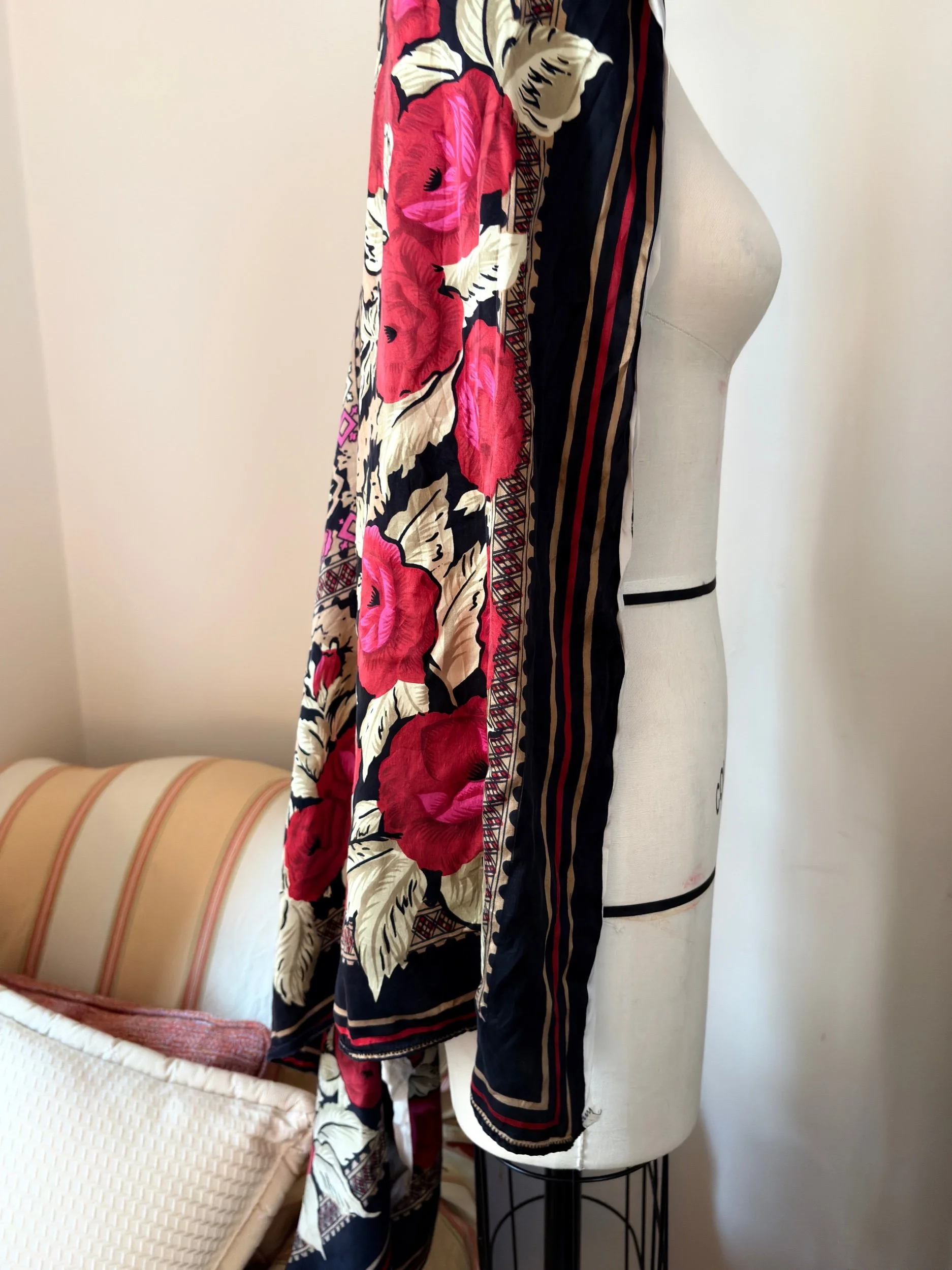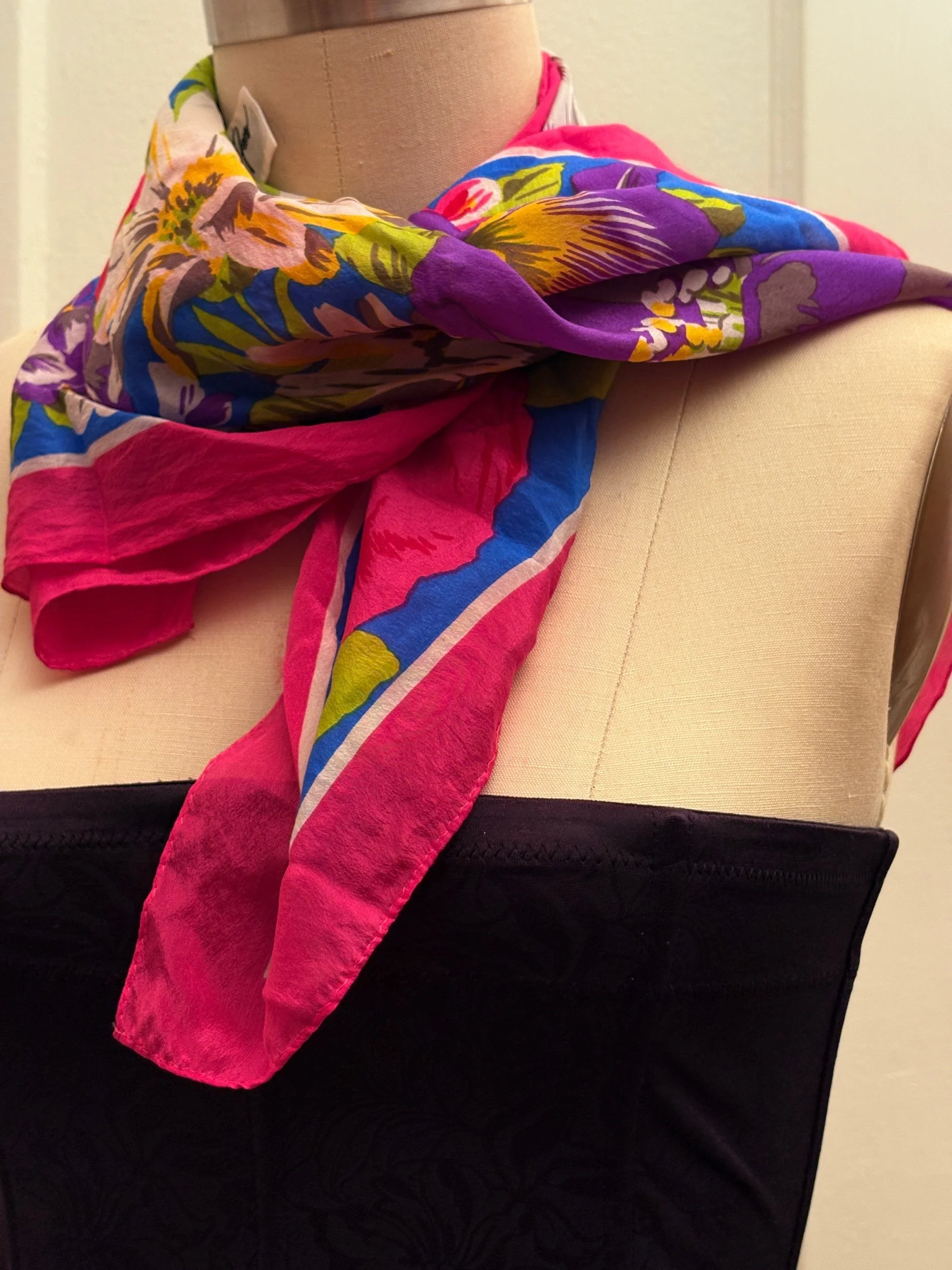 Made from pure silk, the scarf features a soft sheen and a fluid drape that enhance its luxurious and stylish appeal. It serves as a versatile accessory for all seasons, capturing the romantic spirit of vintage travel and artistic charm.