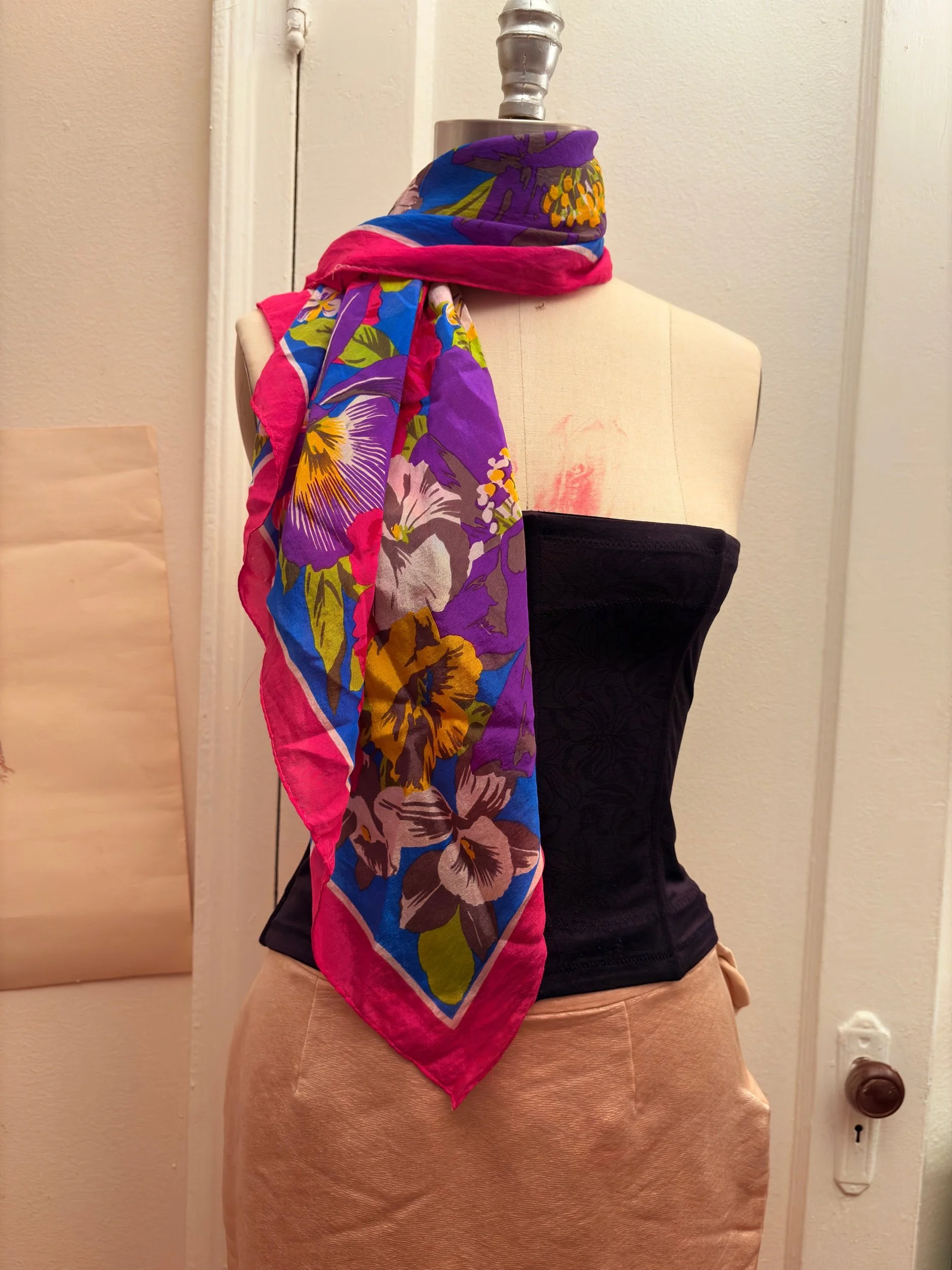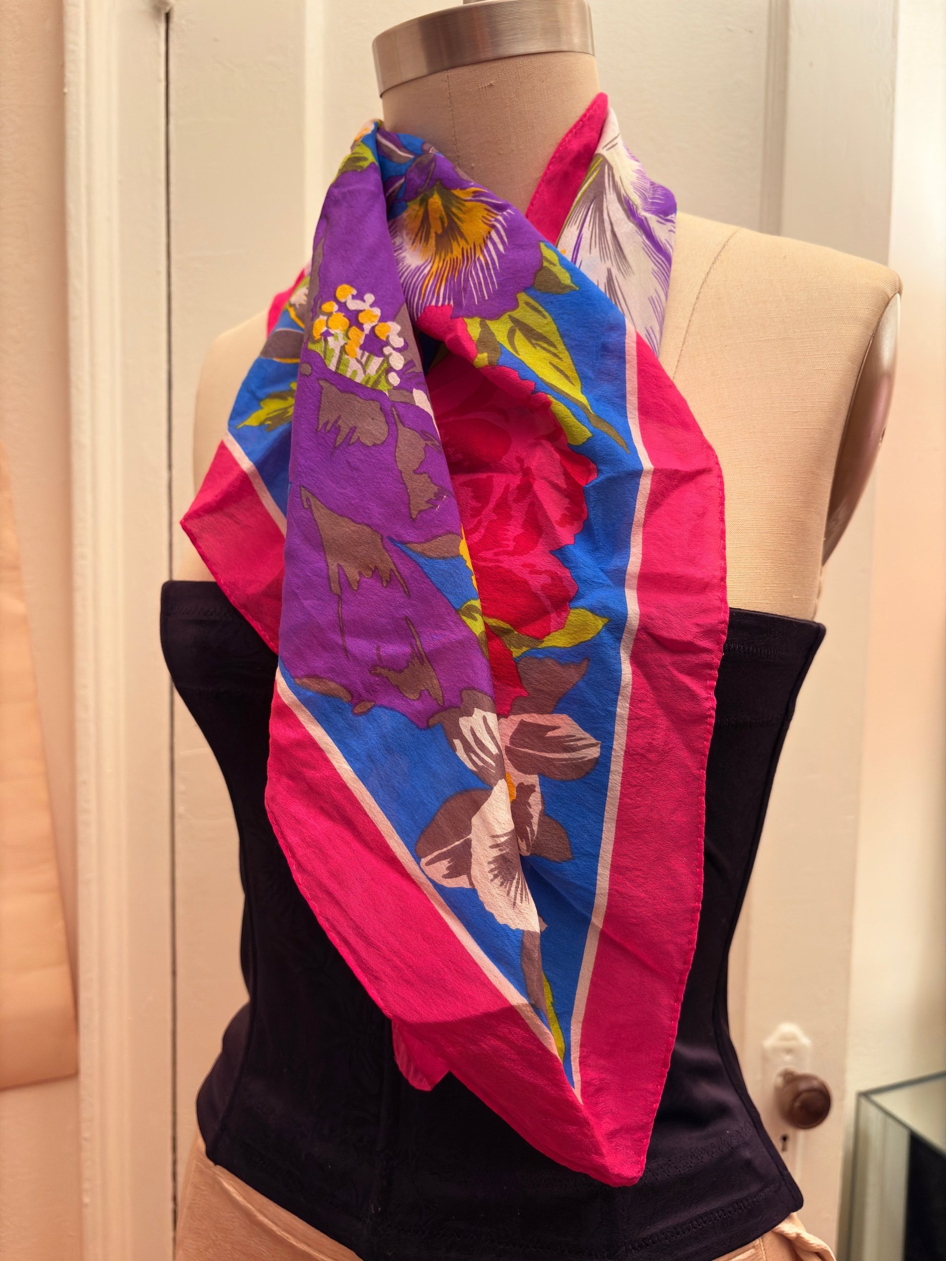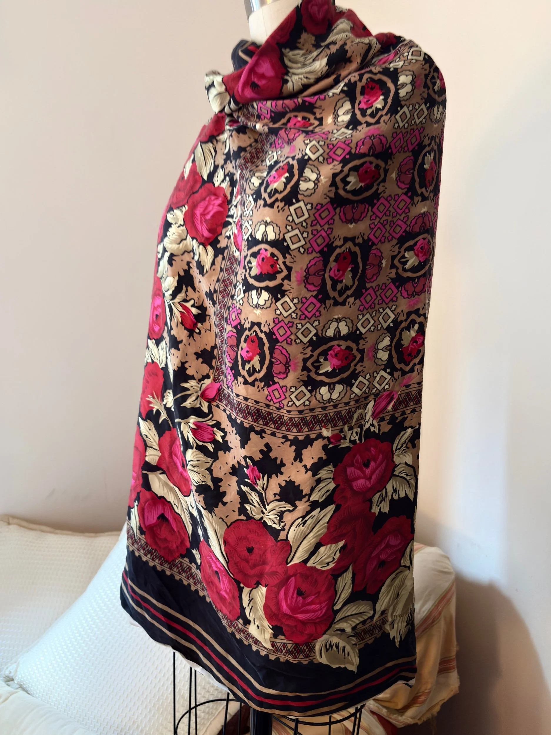 Made from pure silk, the scarf features a soft sheen and a fluid drape that enhance its luxurious and stylish appeal. It serves as a versatile accessory for all seasons, capturing the romantic spirit of vintage travel and artistic charm.